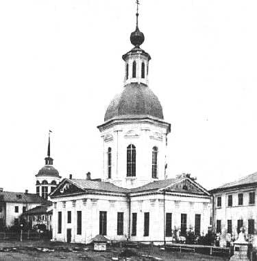 История Саровского монастыря гласит, что здание церкви было построено в 1745-1750 годах. Храм был поставлен на месте, где преподобному Серафиму явилась Пресвятая Богородица и исцелила его от недуга. В 1784 году храм был перестроен в двухэтажный, выполненный в стиле барокко. После закрытия монастыря церковь была разрушена. В 1950-е годы на ее месте было построено трехэтажное здание.