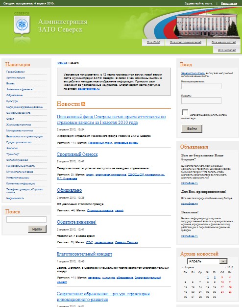 Северский сайт перешел с портального дизайна на строгую и оптимизированную информационную верстку.